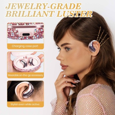 Silnek音乐首饰盒蓝牙耳机手工镶嵌水晶钻石时尚耳挂耳机送给亲朋好友