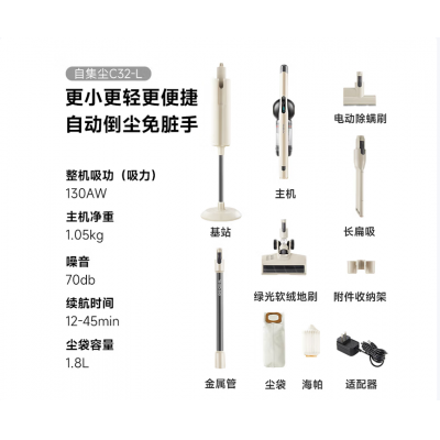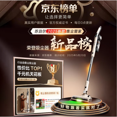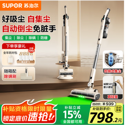 苏泊尔【国家补贴】吸尘器自集尘基站家用手持无线大吸力集尘管家绿光除螨毛发防缠节日礼物C32-SL