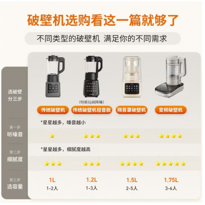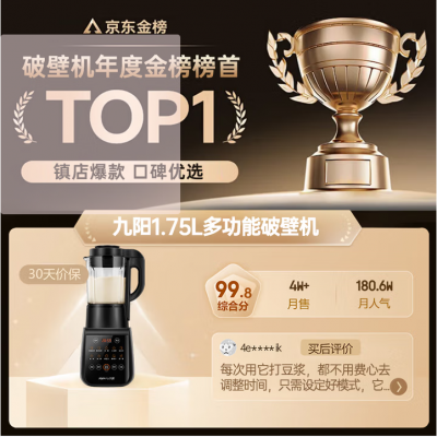九阳破壁机家用轻音全自动多功能降噪预约豆浆机榨汁辅食机1.75L五谷杂粮3-5人金榜Y915S政府补贴