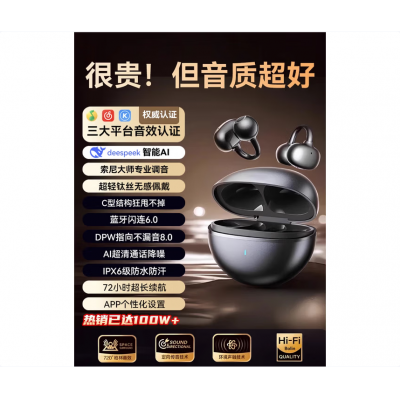 首页 > 手机,数码专区 > 耳机耳麦 > VLR【2025最新款丨金榜第1名】柏林之声蓝牙耳机耳夹式骨传导翻译无线智能AI开放式不入耳运动索尼 【智能AI升级款丨超长续航】无尽黑 空间音效/AI通话降噪/无感佩戴