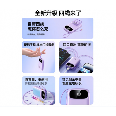 首页 > 手机,数码专区 > 手机配件 > 沃米【国家3C认证 可上飞机高铁】30W快充充电宝20000毫安自带线小巧便携10000大容量超薄移动电源 旗舰版白【30W快充+3C认证+自带四线】 10000毫安